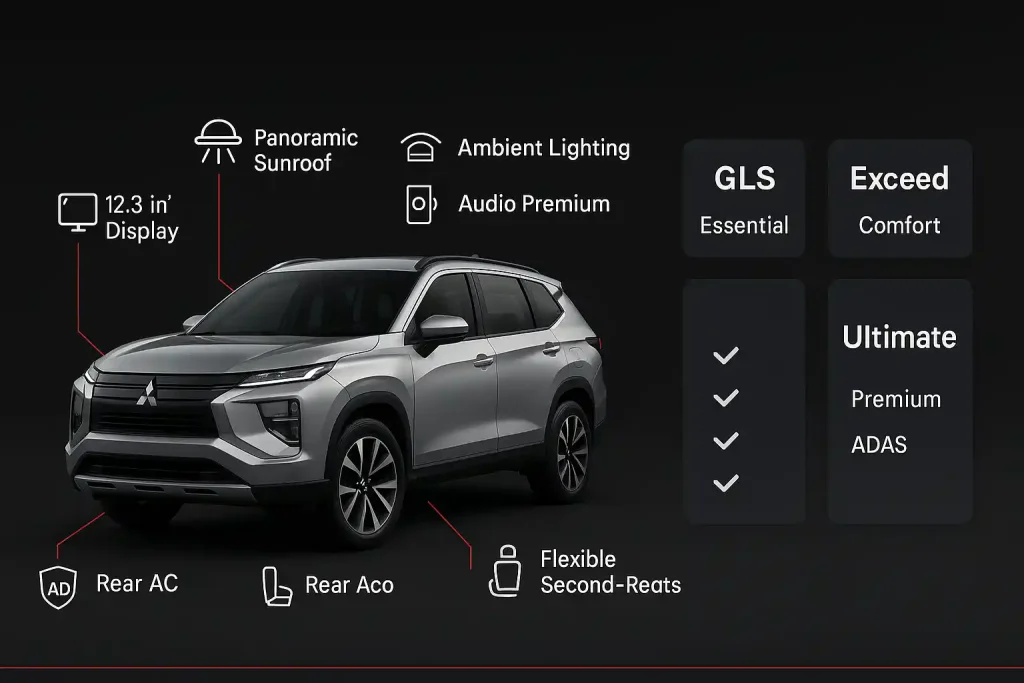 Catatan: Spesifikasi rinci, fitur per varian, dan harga on-the-road dapat berbeda tiap wilayah. Pastikan memeriksa informasi terbaru dari diler resmi Mitsubishi terdekat.